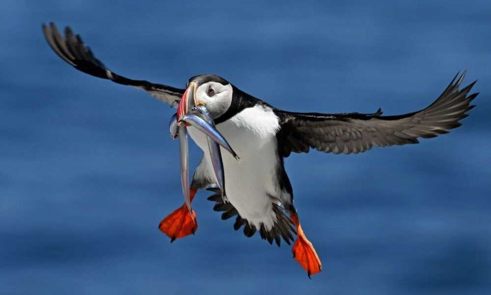 A puffin catches a fish. (Photo by Derrick Jackson)