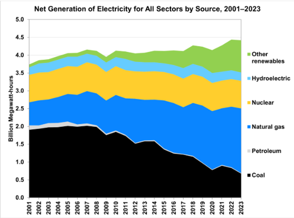 Understanding why rising electricity demand from data centers is a serious problem requires more than a glance at your latest utility bill. Energy isn’t just one of many inputs into the economy; in effect, it is the economy, since doing anything requires it. Of all the energy used in the US and globally, only a little over 20% is in the form of electricity; the rest entails the direct burning of fossil fuels (most electricity is generated also by burning fossil fuels; in the US, 60% of electricity comes from fossil fuel sources—mostly natural gas). Electricity is not a direct source of energy; it’s an energy carrier. But, for households and industries alike, it is an extremely useful way of conveying energy to end users. Just flip a switch or push a button, and electricity makes something happen. It does many things for us, but its role in enabling communications and data processing gives electricity a pivotal importance in the overall energy mix of modern society.