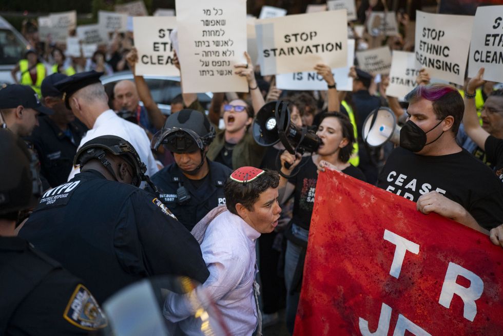 Dozens were arrested outside of the Trump International Hotel in New York City late Monday at a Jewish-led protest demanding an end to U.S. support for Israel's destruction of the Gaza Strip and starvation of its Palestinian population.