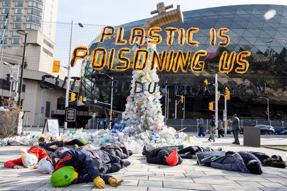 As the fourth round of talks for a global plastics treaty kicked off in the Canadian capital on Tuesday, campaigners with the corporate accountability group Ekō staged a die-in at Ottawa's Shaw Centre to demand an ambitious plan to reduce production.