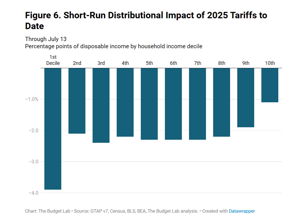 Yale's Budget Lab estimates that it would cost the average household $2,770 worth of disposable income per year if tariffs stayed at their current rate indefinitely, with the worst impact—especially in the short term—on the poorest Americans.