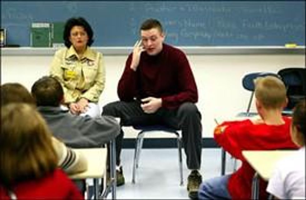 I cannot get out of my mind the photo that appeared on the front page of The New York Times on December 30, alongside a story by Jeffrey Gettleman. It showed a young man sitting on a chair facing a class of sixth graders in Blairsville, Pennsylvania. Next to him was a woman. Not the teacher of the class, but the young fellow's mother. She was there to help him because he is blind.