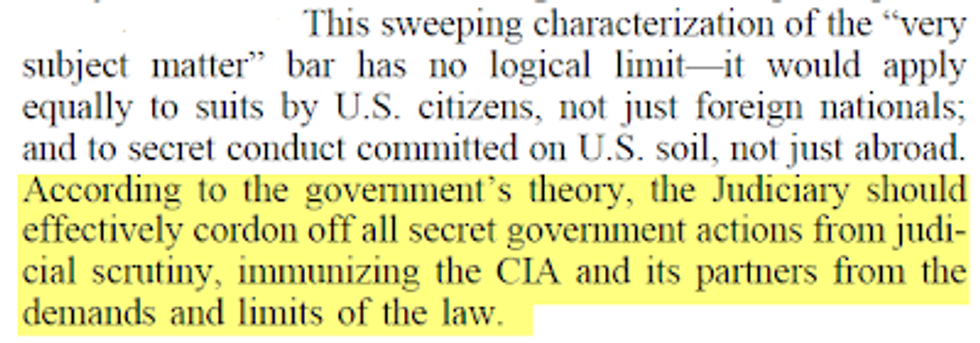 itself from all judicial scrutiny. Given how Obama recently emphasized how committed he is to defending government secrecy powers in court,