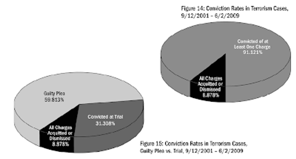 Terrorism cases brought in real courts overwhelmingly result in