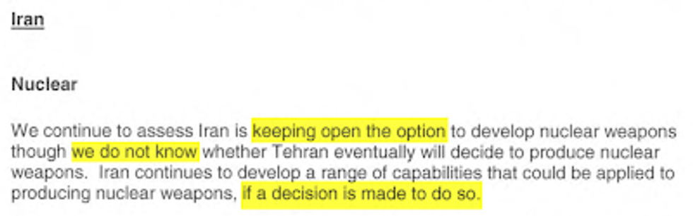 bashing the 2007 NIE, merely claim that analysts "now believe that Iran may