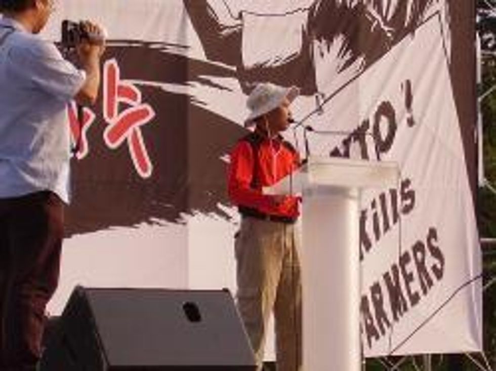 Refusing to have their livelihoods and culture determined by the WTO, Korean farmers have been on the forefront to challenge and disrupt the global free trade agenda. In 2003 at the WTO ministerial meeting in Cancun Mexico, South Korean farmer and former parliamentarian Lee Kyung Hae took his life in protest of the WTO. Lee climbed the chain-linked fence that was erected to keep away civil society groups from disrupting the trade talks and wearing a sign that read "The WTO Kills Farmers," he stabbed himself in the heart. His suicide was a rallying cry for millions of peasants experiencing the same onslaught of free market forces that are driving them off the land and into ruin.