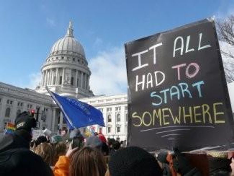 They DC protesters chanted many of the same unions slogans that have been heard at mass protests in Wisconsin. And they picked up a political slogan as well: "Recall!"