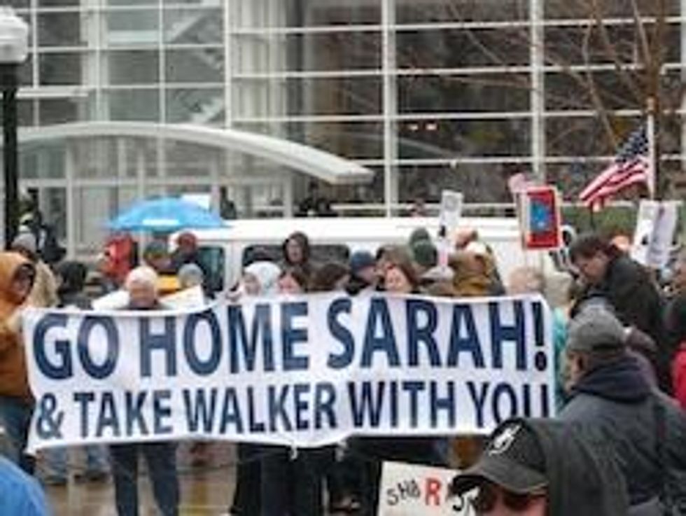 Palin's Madison Rally is Overwhelmed by Protest Crowd
