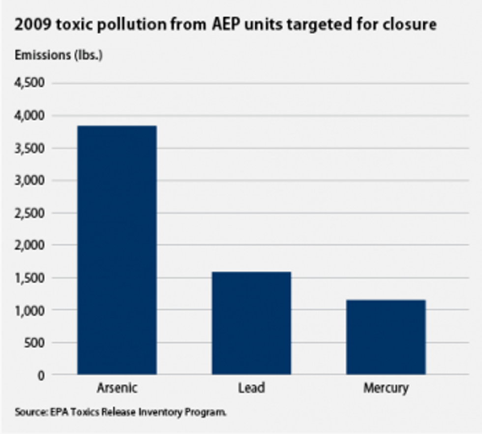 AEP's aging power plants flood the sky with a deadly list of other toxic substances as well. The Big Sandy Plant contributed more than 1,300 pounds of cancer-causing arsenic to the air over Louisa, Kentucky, in 2009.