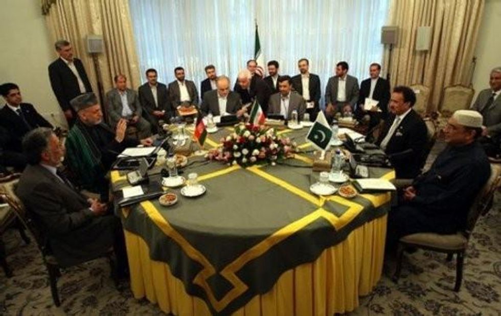 The photo portrays a three-way summit on June 24 hosted by Iranian President Mahmoud Ahmadinejad with Pakistani President Asif Ali Zardari and his Afghan counterpart, President Hamid Karzai. The goal of the meeting was to discuss "concern over a rising lack of security, extremism and terrorism," and the need for "cooperation to combat these phenomena." The day following the photo, Presidents Zardari and Karzai attended an international anti-terrorism conference, again hosted by Ahmadinejad. Also present was Sudan's President Omar al-Bashir, wanted by the International Criminal Court on charges of war crimes, crimes against humanity, and genocide in Darfur, where rape was used rampantly as a weapon of war.