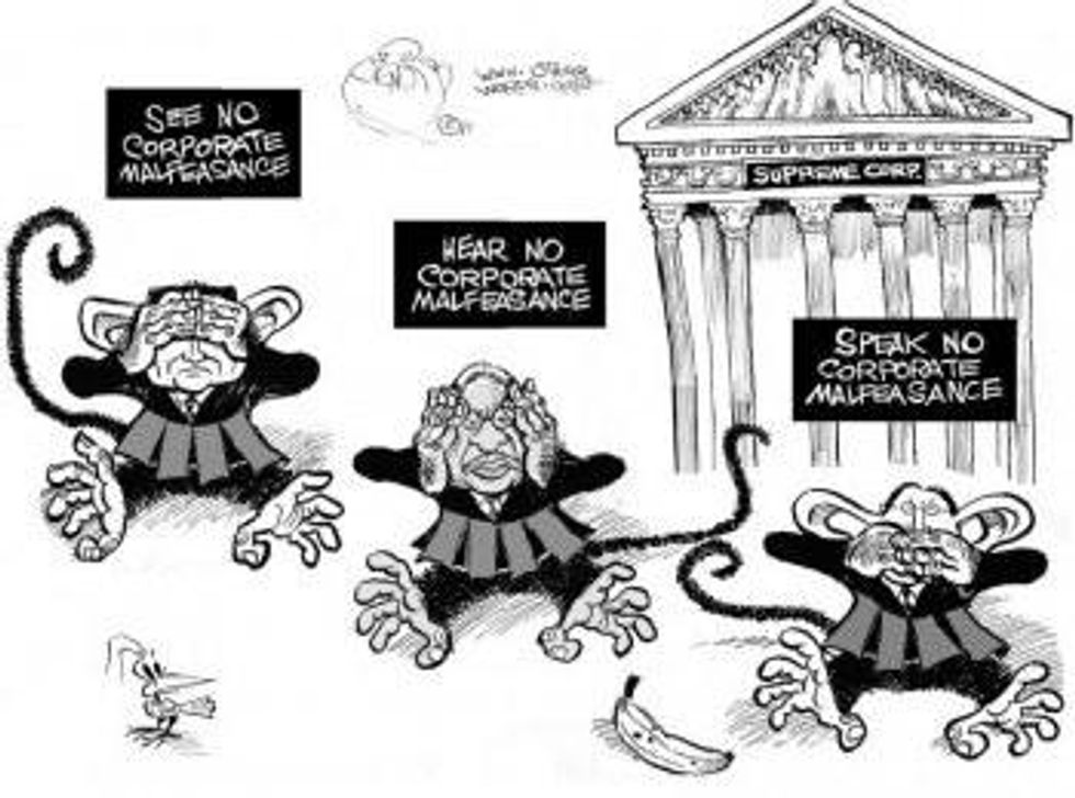 Of course, sometimes the law really is on the side of big business. Our justice system requires that big corporations get a fair hearing just as ordinary citizens do. But they don't deserve more of a voice than the rest of us. The Supreme Court, guided by a right-wing majority, has increasingly bought the convoluted arguments of moneyed corporations lock, stock, and barrel, while turning a blind eye to the law -- to say nothing of the impact on ordinary Americans. These decisions don't just hurt the individuals directly involved in them. They hurt us all, by limiting our rights and sending a signal to the wealthy and powerful that they can go ahead and abuse the rest of us without consequence.