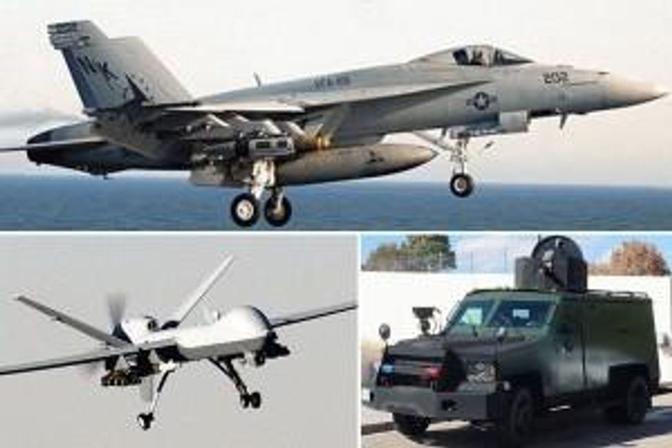 The Los Angeles Times examines the staggering sums of money expended on patently absurd domestic "homeland security" projects: $75 billion per year for things such as a Zodiac boat with side-scan sonar to respond to a potential attack on a lake in tiny Keith County, Nebraska, and hundreds of "9-ton BearCat armored vehicles, complete with turret" to guard against things like an attack on DreamWorks in Los Angeles. All of that -- which is independent of the exponentially greater sums spent on foreign wars, occupations, bombings, and the vast array of weaponry and private contractors to support it all -- is in response to this mammoth, existential, the-single-greatest-challenge-of-our-generation threat: