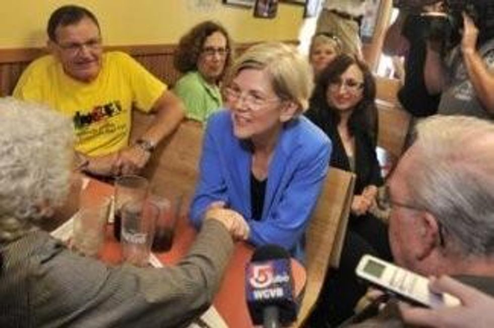 She started Wednesday morning not in the halls of academies but at a Boston commuter station, where she greeted working men--in a campaign start that provided evidence that this, like all of Warren's endeavors, will be a high-energy and people-powered project. And the nation's most identifiable battler against the big banks and the Wall Street speculators was driving the message home. "The pressures on middle-class families are worse than ever, but it is the big corporations that get their way in Washington," she said. "I want to change that."