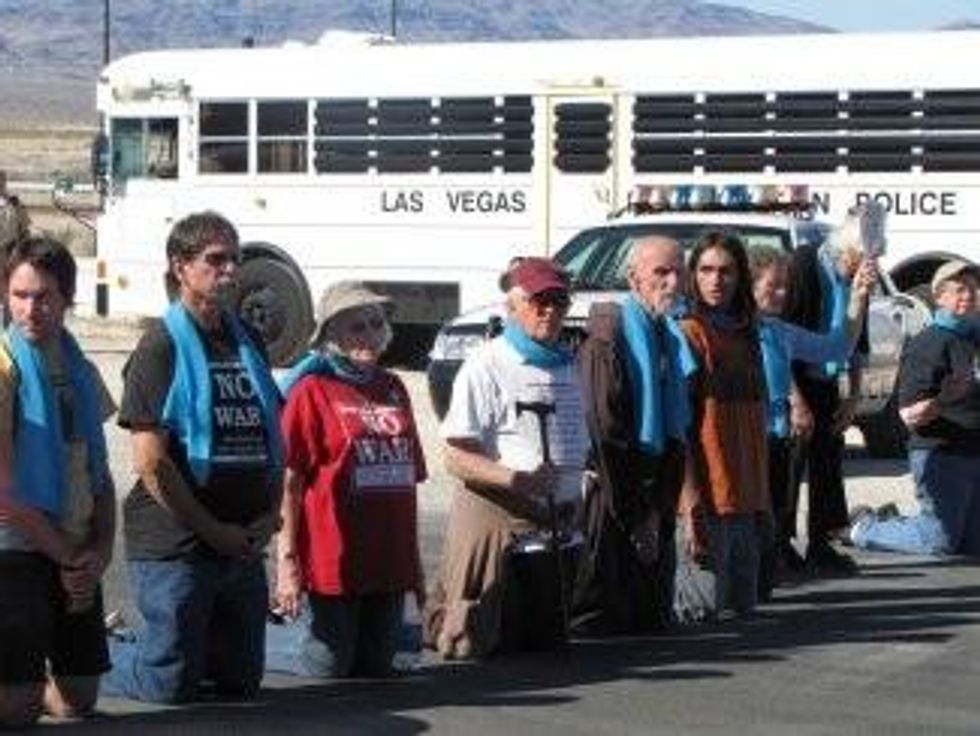 On Sunday, after an interfaith service at the entrance to the Nevada National Security Site, 59 women and men crossed into this top-secret facility and were arrested and cited by Nye County Sheriffs. After they were released, many of them traveled some thirty miles to Creech, where 18 were arrested by Clark County police.