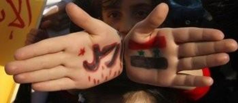I am told that Syrians watched the uprisings in Tunisia and Egypt in awe. Early this year, a few young students aged 8 to 15 years old were emboldened by the unfolding events in the region and wrote graffiti in their school in Dar'a, a poor area south of Damascus. The youngsters were arrested for scrawling the word "freedom" on the school wall. They were beaten and dropped off to their families. As Rafif describes it, "The city went crazy." Many demonstration and marches followed as people publicly expressed their outrage at the regime's tactic to suppress a revolution: the torture of children.