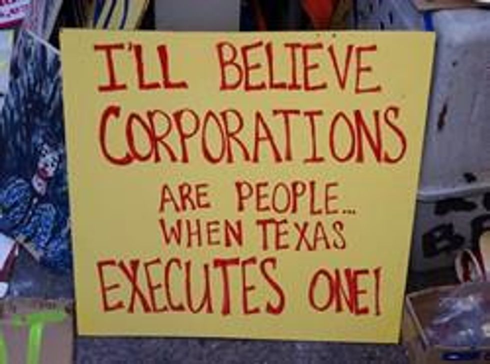 A funny thing happened to the First Amendment on its way to the public forum. According to the Supreme Court, money is now speech and corporations are now people. But when real people without money assemble to express their dissatisfaction with the political consequences of this, they're treated as public nuisances and evicted.