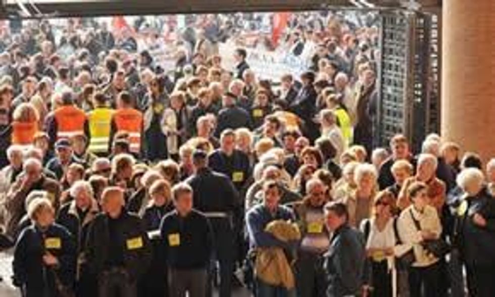 "The case is being heard by three judges," Castleman says. "The case is being held in an auditorium in the justice ministry in Turin. The auditorium is filled with lawyers representing civil parties. Media sometimes show up."