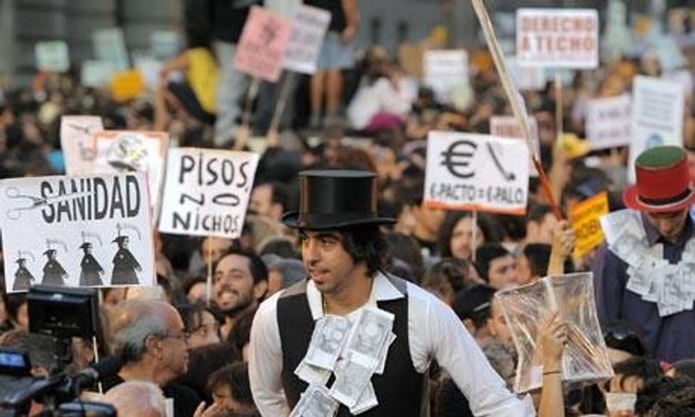 Proposals for voting strategies proliferated in the runup to Sunday's general election in Spain. People wrote "ballot box" on drains and toilets; others suggested cutting out the middlemen and depositing votes directly into bank machines. This campaign of ballot spoiling wasn't a subcultural anarchist prank, but a reflection of extraordinarily widespread popular disaffection. A typical sight during a pre-election protest was a respectable middle-aged man with a cigarette in one hand and a marker pen in the other going from municipal bin to municipal bin writing "Vote here" on the lids."They don't represent us" and "They are all the same" - the slogans of the indignados (the Spanish progenitors of the Occupy movement, who have mobilized hundreds of thousands across the country) - are now mainstream.