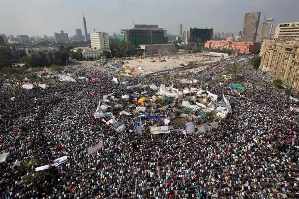 Thousands of Egyptians perform Friday prayers during a rally in Tahrir Square in Cairo, Egypt, Friday, Nov. 25, 2011. Tens of thousands of protesters chanting, "Leave, leave!" are rapidly filling up Cairo's Tahrir Square in what promises to be a massive demonstration to force Egypt's ruling military council to yield power. The Friday rally is dubbed by organizers as "The Last Chance Million-Man Protest,"