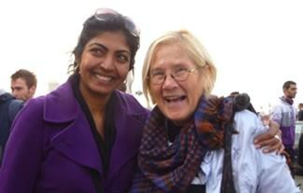 As I started over the bridge, I was thrilled to run into an old friend Anjali Kamat, Democracy Now's great reporter who has been in Cairo since the revolution began in January, 2011. She was heading back into Tahrir to continue her excellent reporting. Anjeli came on the CODEPINK: Women for Peace International Women's Day delegation into Gaza in March, 2009.
