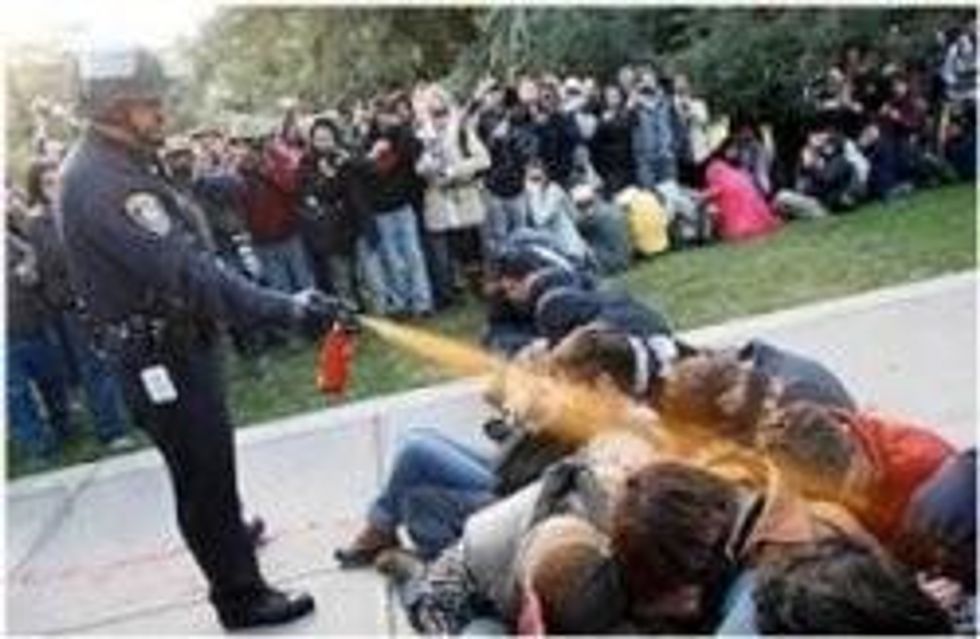 Video of the Nov. 18 incident tells a different story. It shows a group of Occupy Davis student protesters sitting peacefully with arms interlocked while a UC Davis police officer walks back and forth, dousing them at close range with liberal amounts of pepper spray. There is an awful contemptuousness in his bearing. He could be spraying weeds in his garden or roaches in his kitchen.