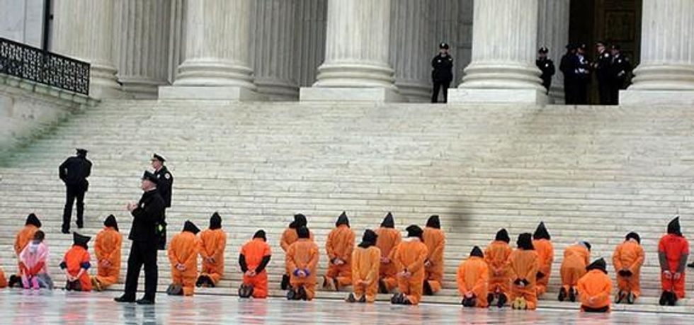 I start with all this because I have been thinking about Guantanamo. The notorious and often forgotten gulag is in the news again this week because the Senate voted on Tuesday to retain a provision within the National Defense Authorization Act that would allow the military detain terror suspects on U.S. soil and hold them indefinitely without trial. In addition, the measure--which passed in a bipartisan show of fear-mongering and brutality--would close the door to civilian trials for terror suspects and place restrictions on resettling the dozens of men at Guantanamo who have been cleared for release.