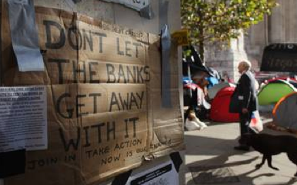 And that is the true parallel in the West. The protest movements are indeed against Big Business - a perfectly justified cause - and against "governments". What they have really divined, however, albeit a bit late in the day, is that they have for decades bought into a fraudulent democracy: they dutifully vote for political parties - which then hand their democratic mandate and people's power to the banks and the derivative traders and the rating agencies, all three backed up by the slovenly and dishonest coterie of "experts" from America's top universities and "think tanks", who maintain the fiction that this is a crisis of globalization rather than a massive financial con trick foisted on the voters.