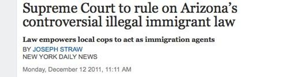 Two words stood out in the AP news story on Arizona's controversial SB 1070 immigration law yesterday: BREAKING: Supreme Court says it will rule on Arizona law targeting illegal immigrants