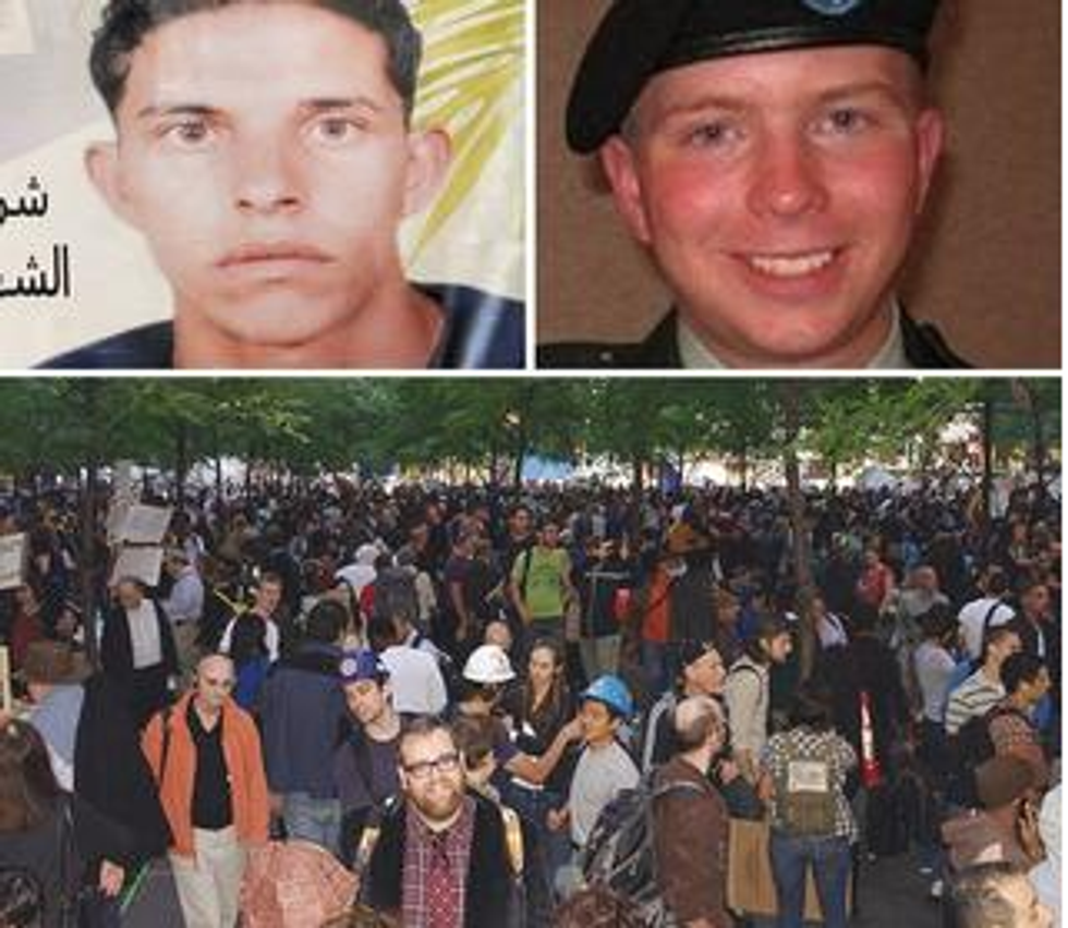 People across the world devoured the information Bradley Manning revealed, and it was used by movements in Egypt, Spain, and eventually Occupy Wall Street to bolster what we already thought was true. Except here were the goods -- the evidence that was needed to prove it all true. And then a democracy movement spread around the globe so fast and so deep -- and in just a year's time! When anyone asks me, "Who started Occupy Wall Street?" sometimes I say "Goldman Sachs" or "Chase" but mostly I just say, "Bradley Manning." It was his courageous action that was the tipping point -- and it was not surprising when the dictator of Tunisia censored all news of the Wikileaks documents Manning had allegedly supplied. But the internet took Manning's gift and spread it throughout Tunisia, a young man set himself on fire and the Arab Spring that led eventually to Zuccotti Park has a young, gay soldier in the United States Army to thank.