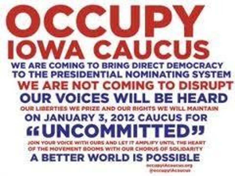 Every Iowan who identifies with the 99 percent should caucus on the evening of January 3rd. But after years of foreclosure, bailouts, corruption, warfare, corporate welfare and the erosion of our freedoms we cannot support any of the Presidential candidates. We cannot consent to this broken system any longer. We will join with our neighbors and caucus for "uncommitted." Uncommitted means we support no candidates and sends a strong message to the leaders of both parties.