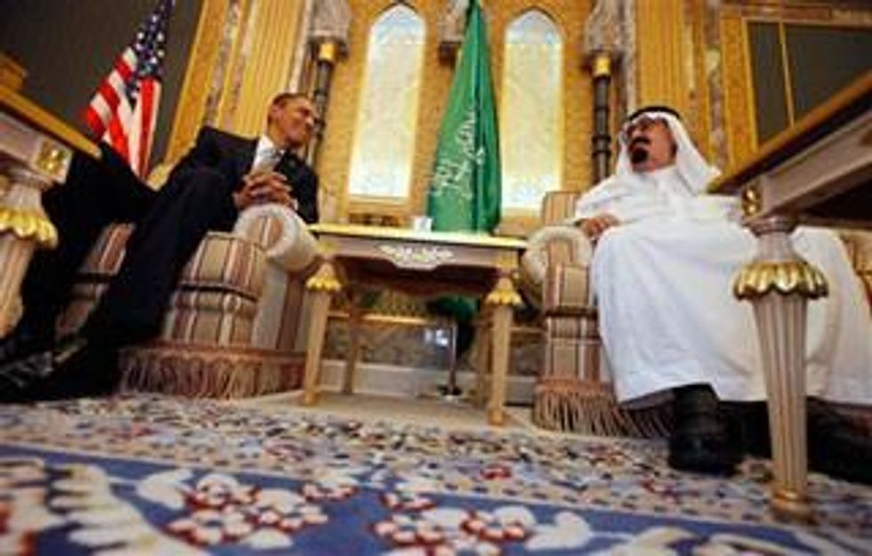 This is the same Saudi monarchy that rushed its forces into Bahrain last March to crush a popular uprising. But that doesn't trouble the Obama administration; for two years it has been aggressively pushing the Saudi arms deal, which includes $30 billion in fighter jets built by Boeing. Forget human rights or the other good stuff Democrats love to prattle on about. As White House spokesman Josh Earnest put it: "This agreement reinforces the strong and enduring relationship between the United States and Saudi Arabia and demonstrates the U.S. commitment to a strong Saudi defense capability as a key component to regional security."