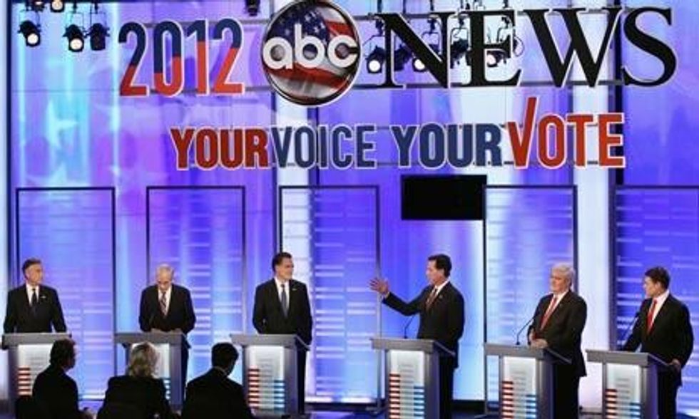 On to Ron Paul, the libertarian in the race who believes that the government should totally get out of people's lives - as long as their lives don't involve sex. Then, the government should be all up in that shit. He is unique in that his racist newsletters, coupled with his staunch antiwar stance, have won him the undying support of that coveted "racist pacifist" faction of the American electorate.