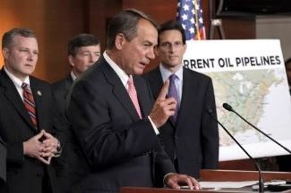 What was interesting yesterday was watching the reaction of the congressional leadership, who'd forced the issue by passing legislation mandating a speedy approval process. They'd set the president an essentially impossible task, since Transcanada Pipeline hadn't even announced the route they wanted to take through Nebraska. But apparently they thought he'd blink anyway. After all, the head of the American Petroleum Institute had issued the most naked political threat imaginable: block the pipeline, he'd told the president in a speech last week, and there will be "huge political consequences." And of course he has more than enough money to back up the threat.
