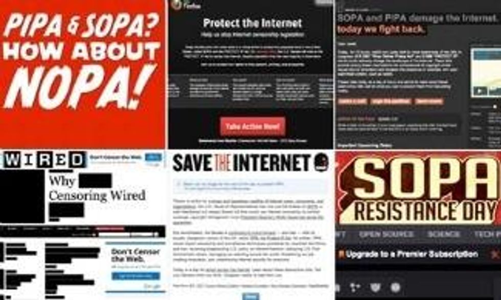 Wednesday 18 January marked the largest online protest in the history of the internet. Websites from large to small "went dark" in protest of proposed legislation before the US House and Senate that could profoundly change the internet. The two bills, Sopa in the House and Pipa in the Senate, ostensibly aim to stop the piracy of copyrighted material over the internet on websites based outside the US. Critics - among them, the founders of Google, Wikipedia, the Internet Archive, Tumblr and Twitter - counter that the laws will stifle innovation and investment, hallmarks of the free, open internet. The Obama administration has offered muted criticism of the legislation, but, as many of his supporters have painfully learned, what President Barack Obama questions one day, he signs into law the next.