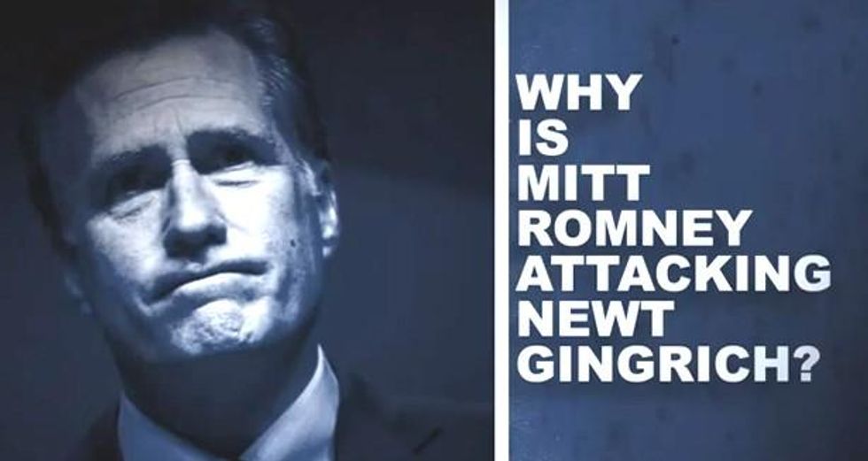 Then came another ad, darker and more threatening, with grainy production values, old black-and-white photos and a blistering assault on the Republican presidential contender who had briefly leapt ahead of Romney in the polling: former House Speaker Newt Gingrich. "Newt has more baggage than the airlines," the ad warned, before linking Gingrich to "China's brutal one-child policy," "taxpayer funding of some abortions," "ethics violations" and "half-baked and not especially conservative ideals." Quoting a National Review poke at Gingrich, the ad closed with the line: "He appears unable to transform, or even govern, himself."