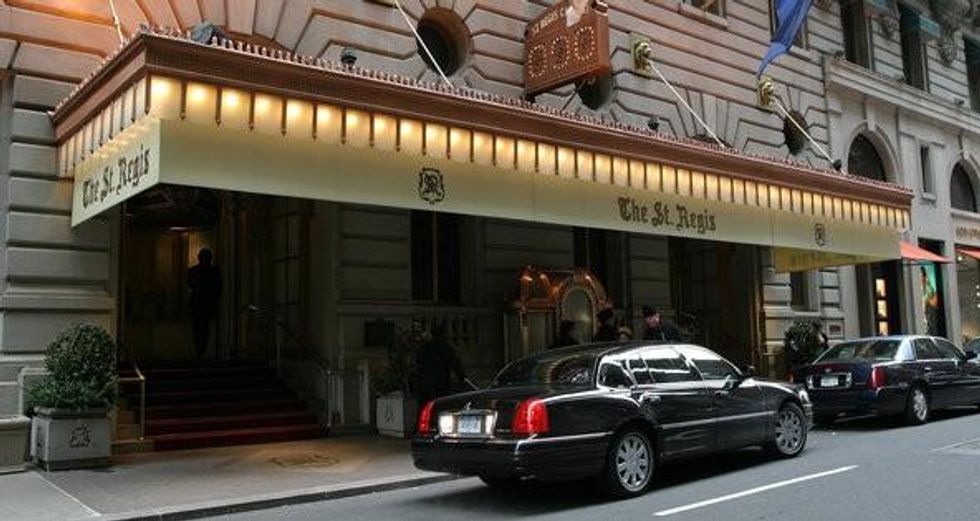 They got together at the St. Regis Hotel off Fifth Avenue to eat rack of lamb, drink and haze their newest members, who are made to dress in drag, sing and perform skits while braving the insults, wine-soaked napkins and petit fours - those fancy little frosted cakes -- hurled at them by the old guard. In other words, a gilt-edged Animal House, food fight and all.