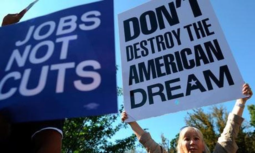 In fact, we can't possibly achieve the growth needed to reduce the budget deficit as a proportion of the total economy unless far more people are employed. Workers are consumers, and consumer spending is 70 percent of economic activity. And cutting the budget means fewer workers, directly (as government continues to shed workers) and indirectly (as government contractors have to lay off workers) and therefore fewer consumers.