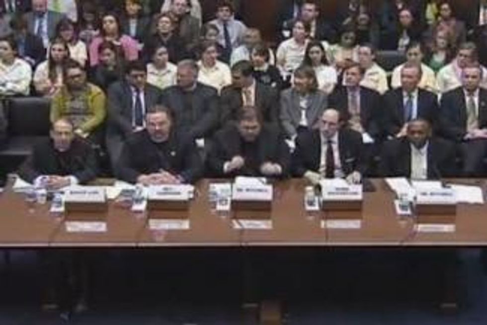 This was but one of a series of you-had-to-be-there-to-believe-it episodes during a hearing on women's health care that featured nine male members of the religious right and only two female witnesses, all of whom in any case are opponents of the birth control mandate, and the majority of whom oppose the use of contraception per se; saw the constant and intentionally misleading re-definition by the religious right of modern methods of contraception as "abortifacients"; shut out not only the many religious leaders who support both the mandate and women's moral agency, but also medical and health professionals and witnesses who'd experienced denial of contraceptive care; and also featured constant and strident chiding by the Committee Chair, Congressman Darrell Issa (R-CA), of his Democratic Party counterparts that the hearing was "not about women's health, contraception, or health reform," while allowing all the anti-contraception, anti-health reform witnesses to speak about nothing but denying women health care, contraception, and health reform. The Democratic women representatives walked out of the hearing in protest.