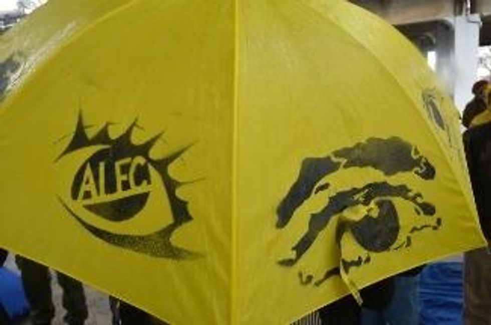 Pfizer is a long-time ALEC member and one of the drug manufacturers that stands to benefit from ALEC bills that limit consumers' rights to seek justice when they are injured or killed by faulty medical products. "A lot of people don't realize that Pfizer is spending a lot of money to be a corporate member of this DC-based organization that is pushing legislation that does not benefit citizens," Gillece said. One of the signs dubbed ALEC: "Amoral Legislators Enriching Corporations."
