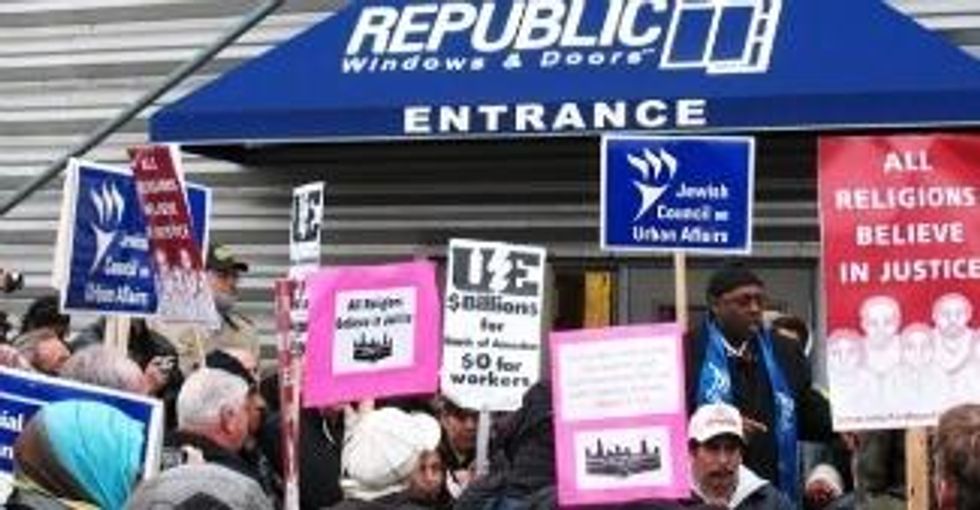 One small factory in Chicago could be ground zero not once but twice, for a power shift. In 2008, the factory was saved by the workers' own defiance, their organization and their ability to tell an effective story about bailout injustice at just the right political moment. President Obama had been elected but not yet inaugurated. Voters still loomed larger on his-- and the nation's--landscape than the bankers and bullies of the establishment. As a candidate, Barack Obama trod the picket line with striking hotel workers. President-elect Obama spoke out in support of Republic, but as Naomi Klein pointed out on GRITtv back then, "the Republic workers won without help from any president."