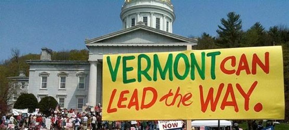 In the meantime, Vermonters elected a strong single-payer supporter, Peter Shumlin, for governor. But the state had seen good single-payer plans and supportive governors before (think Howard Dean). One difference this time around was a huge popular mobilization. As the legislature deliberated, supporters of single-payer turned out in large numbers, including a "People's Team" clad in bright red T-shirts that became a fixture at the State House. The Vermont Workers Center, which had been working to build grassroots support on the issue for two decades, can take a lot of the credit. "It would be a shame," the center's James Haslam emphasized, "if the lesson people took from Vermont was that the win here was all about having ... a sympathetic governor."
