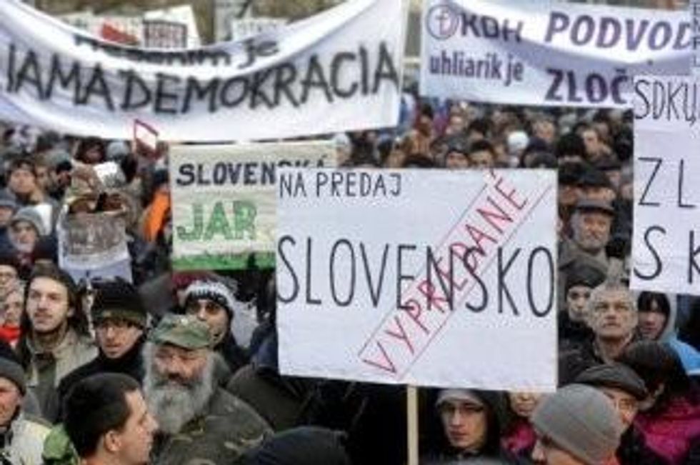 Although there's been almost no coverage of Slovakia's mass protest movement, the country has seen the largest demonstrations since the Velvet Revolution. The protests were sparked in part by the "Gorilla" scandal, leaked recordings of Slovakia's free-market politicians negotiating their bribes with bankers from a top hedge fund, Penta, in exchange for Penta's lucrative privatization deals.