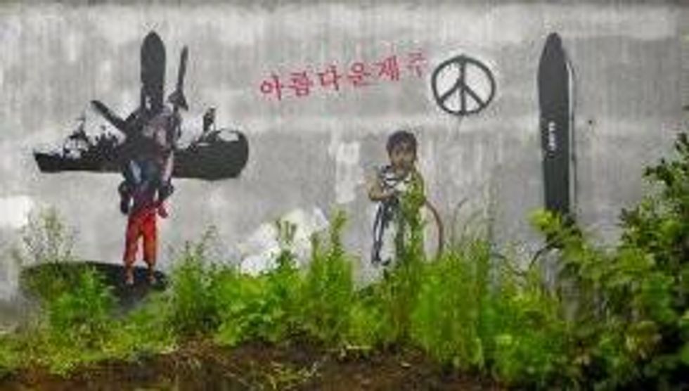 The issue is no joke either. The United States and South Korea have teamed up to build a huge naval base on the beautiful, pristine island of Jeju -- a bio-region so unique that UNESCO has identified nine different geological sites there as "Global Geoparks." In the midst of this natural wonderland, the two military powerhouses want a deep-water harbor for the nuclear-armed Aegis destroyer and other ships that can menace China and protect Washington and Seoul's strategic interests in the region.
