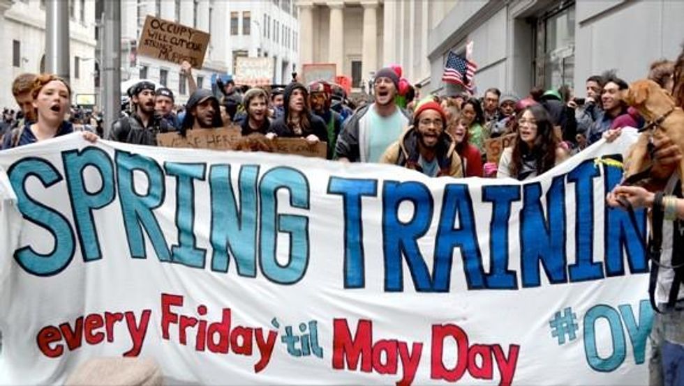 As I sit in the New York City Police Department's central booking, which has become my second home over the course of the last 48 hours, I'm reminded again why we keep mounting days of action and protest. Since last Saturday's attempt to re-occupy Liberty Square, my role as an organizer in the Occupy movement feels more and more like it did back in the late fall. While doing jail support for arrested and brutalized comrades, my phone has been ringing and buzzing relentlessly with inquiries from fellow Occupiers, press, community-based organizations and union allies. Members of our movement, emboldened by #M17, have been living, sleeping and organizing in Union Square for the last two days, an occupation that continues as I write. It is safe to say that spring is here and that, once again, we have a day of action to thank for this resurgence.