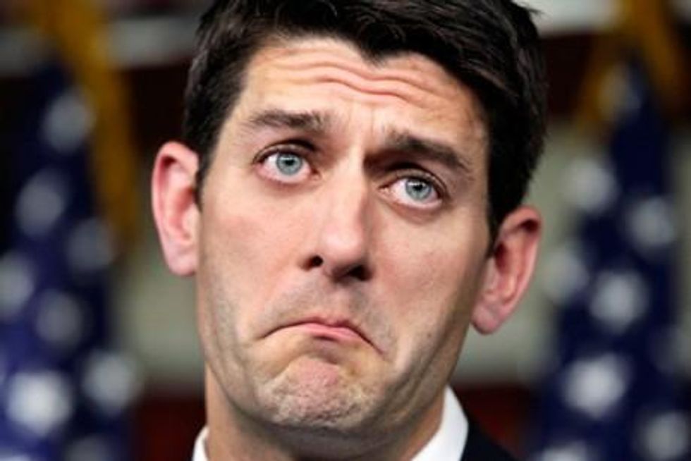 The debt ceiling "grand bargain" failed. President Obama learned from the debacle and switched his focus to job growth from deficit-cutting. But the Ryan plan, with its political benefits for Democrats, also receded from the front pages. Until now, that is. Ryan brazenly released the 2013 version of his budget Tuesday morning. It's a cocktail of snake oil and castor oil. It proposes $1.028 trillion in discretionary spending, less than the $1.047 trillion spending cap established by the debt-ceiling deal, repeals Obamacare, and cuts the top individual tax rate and the corporate rate as well. It aims to replace Medicare with a voucher plan again. Ryan says all of the GOP presidential candidates are down with his budget proposal. "I have spoken to all of these guys and they believe we are going in the right direction," he told reporters. That's great news for Democrats.
