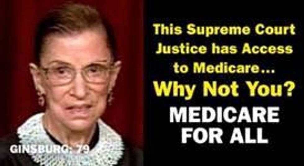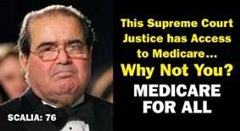 Single payer, Medicare for all. If Medicare is good enough for grandma, and for Scalia and Breyer and Kennedy and Ginsburg, it ought to be good enough for all of us.