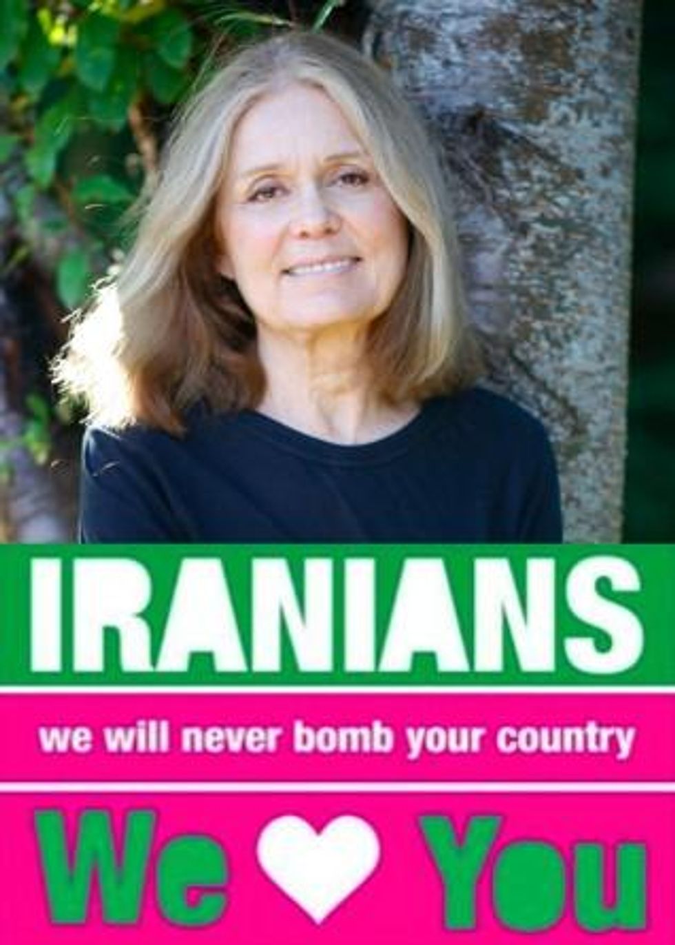 U.S. feminist author Gloria Steinem has also lent her voice to this effort to stop a new war. "Before the U.S. military attacked Iraq, I joined many activists, writers and artists in signing a call opposing a preemptive military invasion of Iraq," said Steinem. "We feared such a war would increase human suffering, arouse animosity toward our country, damage the economy and undermine our moral standing in the world. Our fears turned out to be right. Once again we are calling on people to stop another devastating war, and we're especially calling on women--as we've seen from Ireland to Libya, women often have a peacemaking advantage. Let's hope this time our government listens."