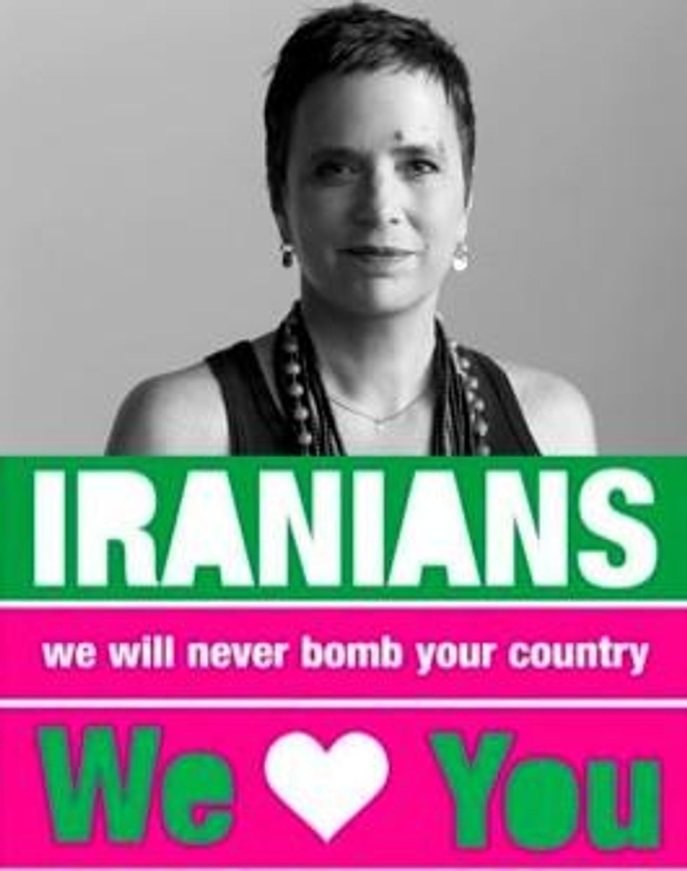 This exchange has now gone global, with people around the world--including many Americans--sending in heartwarming videos, photos and messages. CODEPINK is contributing to this campaign by launching a new site, www.weloveiran.org, that allows people to upload their own photo and superimpose a message on the picture, post it to their Facebook, tweet it, and share it with friends. Some of the images will become larger than life when projected on the Capital and State Department buildings later this month.