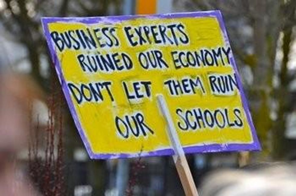 Occupy the Department of Education, sponsored by United Opt Out, took place in DC March 30 - April 2, 2012. The quantitative numbers were somewhat low for an Occupy protest but from a qualitative standpoint, the event was a huge success. Teachers, parents, concerned citizens and academics gathered for four straight days outside the DoED. They came from California, Colorado, Florida, Tennessee, Virginia, Massachusetts, New Jersey, New York, Oregon, Maryland, and elsewhere to stand up against the destructive education policies being perpetuated by the greedy corporate education reformers pushing more high stakes standardized testing, teacher evaluations based on test scores, charter schools, vouchers and the further privatization of public education.