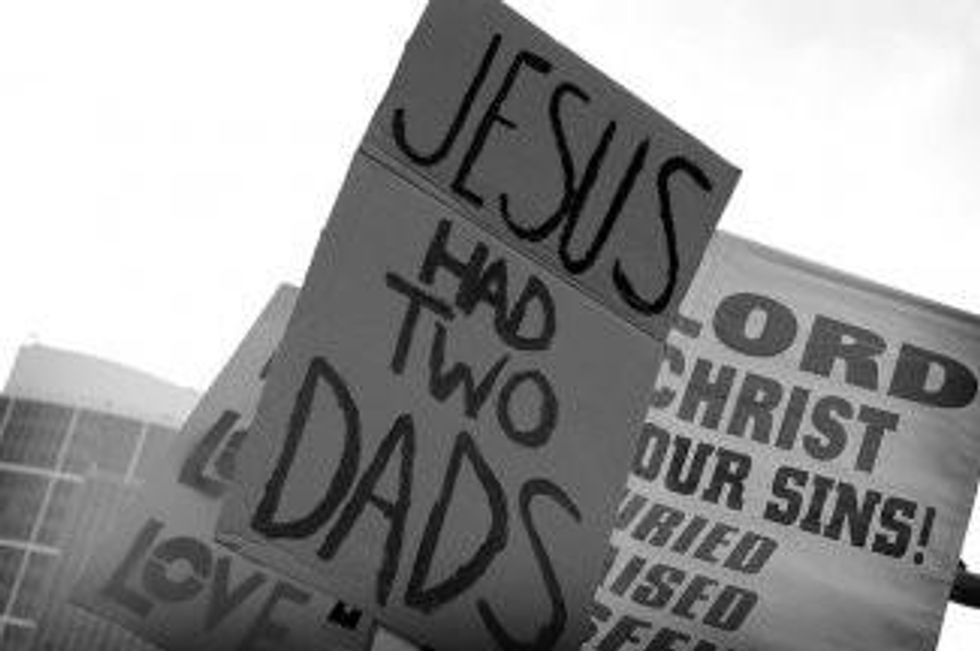 Put another way: Hatred is, we all know, a learned experience. Someone teaches you that blacks are scary, Muslims are evil, women are lesser. Someone force feeds kids the vile falsehood that gay love is an abomination, as opposed to something obvious and common across every species of animal on the planet. I say 'force,' because kids will never believe it otherwise.